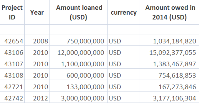 एड डेटा रिपोर्ट में कहा गया है: “ऋण को दो भागों में विभाजित किया गया था: $ 1.33 बिलियन अल्पावधि ऋण को पुनर्वित्त करने के लिए लगाया गया, जबकि शेष $ 600मिलियन (43108 करोड़ रुपये) का उपयोग हुआवेई और जेडटीई से उपकरण खरीदने के लिए किया गया। 9 मार्च, 2011 को ऋण पर अंतिम रूप से निर्णय लिया गया था। ”