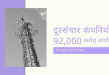 दूरसंचार कंपनियों पर भारत सरकार का 92,000 करोड़ रुपये बकाया है